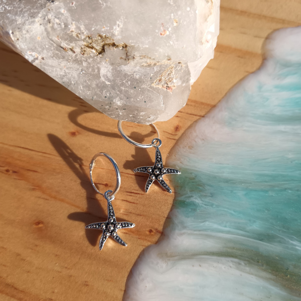 Huggies. Aros con argolla de estrella de mar.Plata 925. Largo total 2.5 cm